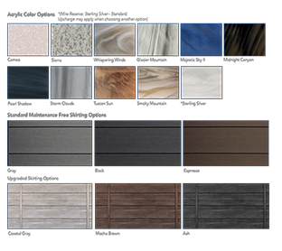 Colors are photographic representations only. Appearance will vary by monitor settings. Actual production color may vary. Acrylic color and skirt availability is subject to change without notice. Please see your dealer for further details.