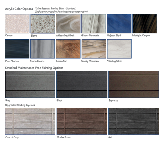 Acrylic color and skirt availability is subject to change without notice. Please see your dealer for further details.